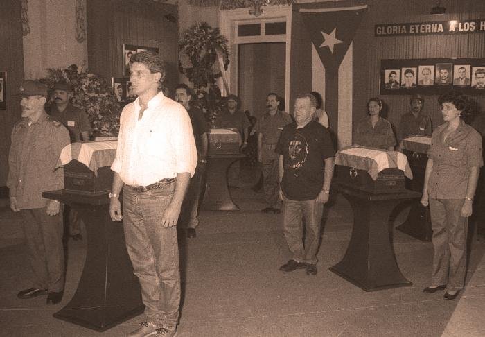Upon arrival, Che's daughter, Aleida Guevara March, said: "Today his remains come to us, but they do not arrive defeated. They come turned into heroes, eternally young, brave, strong, bold. No one can take that away from us; they will always be alive with their children, in the village." That same day, in another moving ceremony, they were temporarily deposited in the Granma Room of the Ministry of the Revolutionary Armed Forces. At the ceremony receiving the remains of Che and his compatriots, then President the late Fidel Castro said: "We do not come to bid farewell to Che and his heroic companions. We come to receive you," Fidel further referred to Che as a “moral giant.”