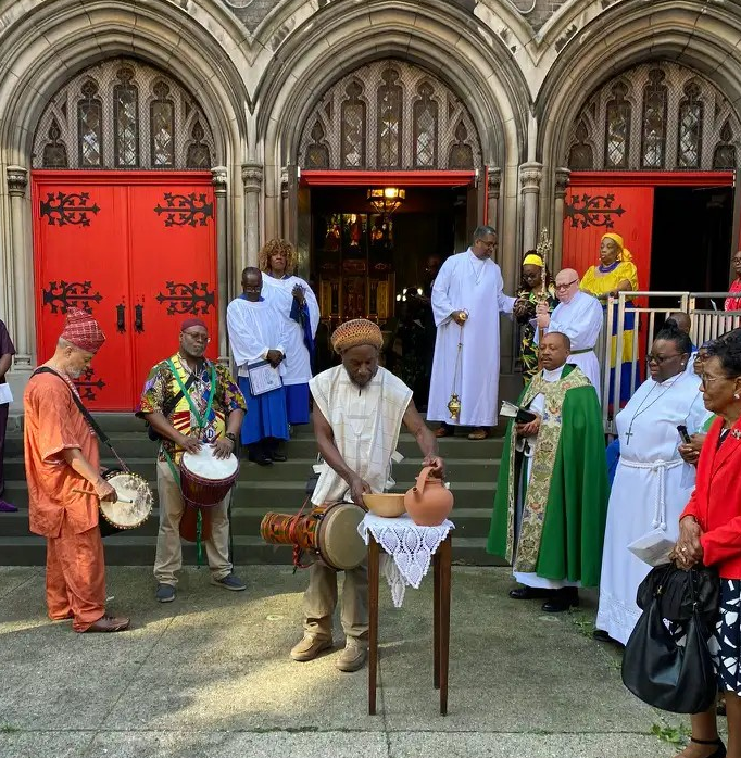 An African ritual being performed outside the St. Paul's Church - Photo: Keisha-Gaye Anderson