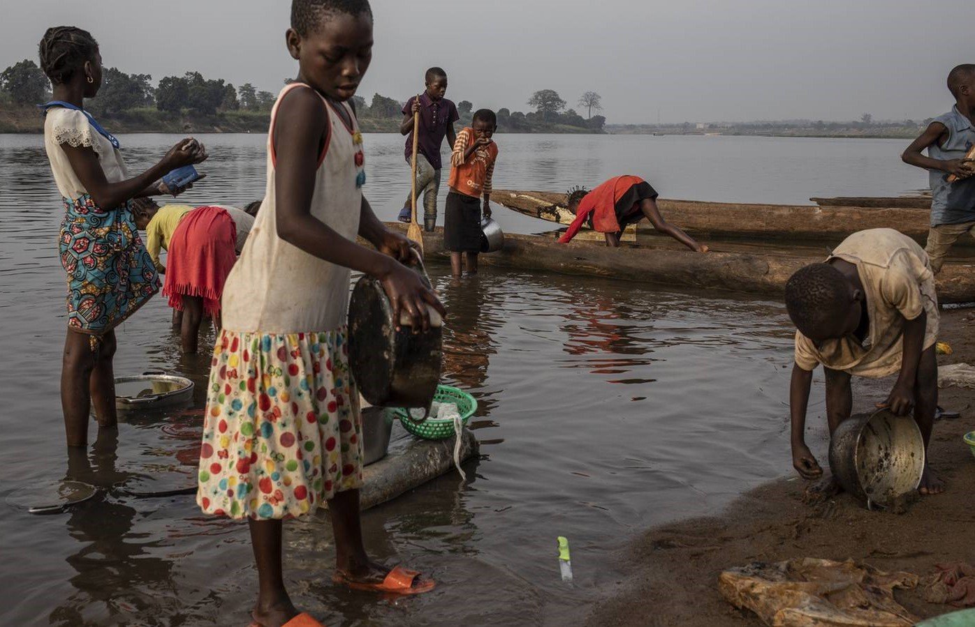 Children washing cooking utensils at the Oubangui river, Central African Republic - Photo: Siegfried Modola/Getty Images